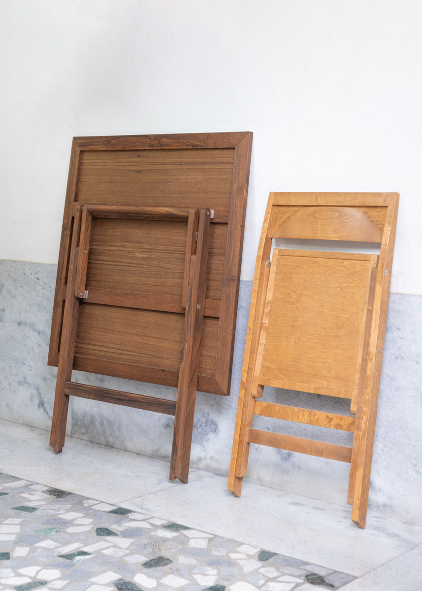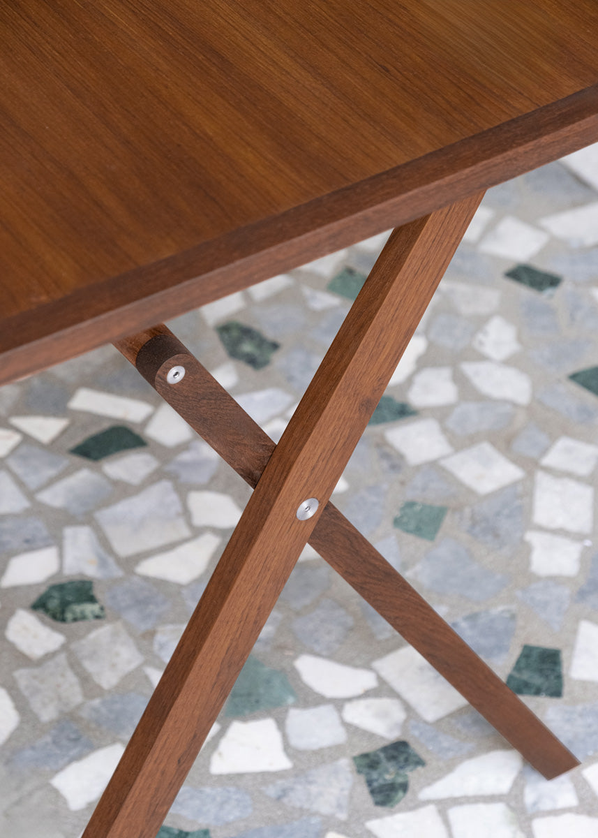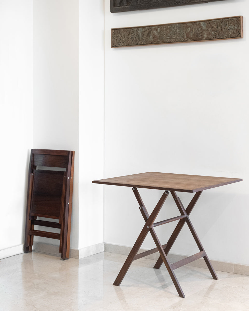 A compact table that seats four, designed for flexibility in living and working spaces. Solid wood construction and stainless steel hardware ensure strength and longevity. Lightweight enough to move easily, refined enough to remain present.