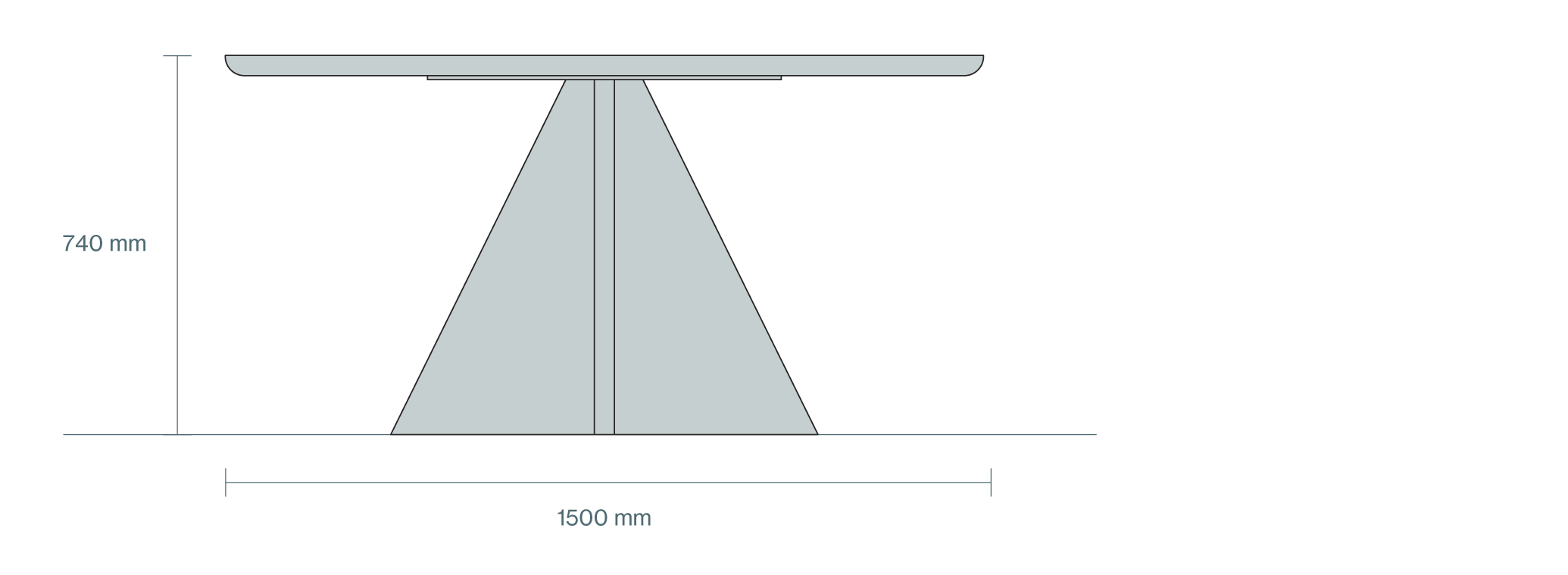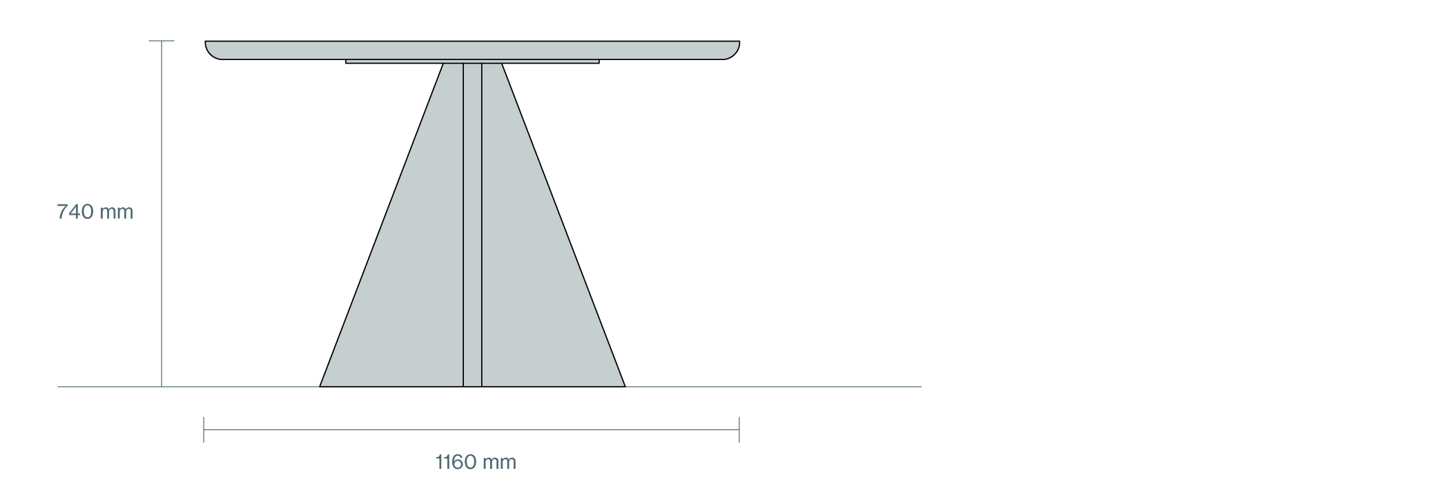 A simple table with a round top and three triangular planes that are splayed to form a pyramid. Ideal for small group gatherings, meals, or intimate meetings. The table top is available in wood veneer, white marble, pink marble and green marble.