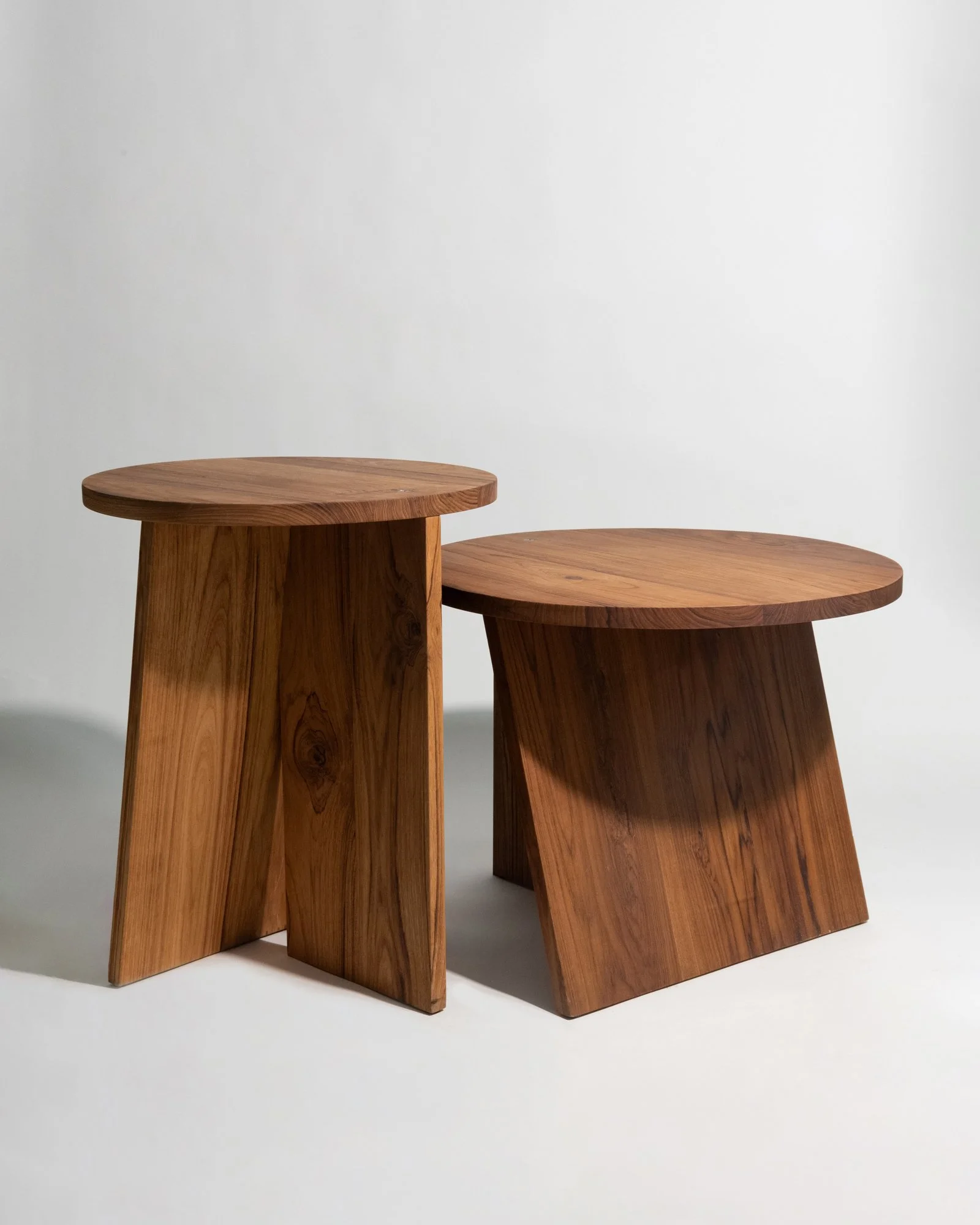 A family of wooden side tables inspired from stacked playing cards, perfect for any nook in a space. Arrangements of planes intersecting, designed to be flatpack coming together with a single custom screw, demonstrating invisible engineering and sophisticated functionality.